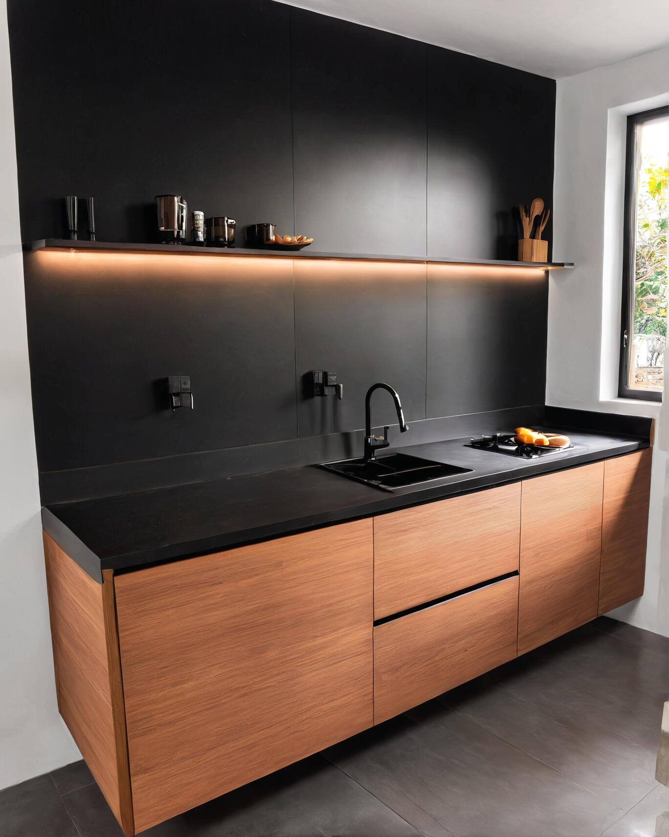 Ofrecemos un servicio integral que abarca el diseño, fabricación e instalación de cocinas básicas, con un largo máximo de 2,30 metros. Nuestros proyectos emplean materiales de alta calidad, resistentes al agua, para los muebles, asegurando durabilidad y funcionalidad. La encimera se fabrica en porcelanato sintético, que combina elegancia y resistencia. Desde el concepto hasta la instalación final, garantizamos una cocina práctica y estéticamente refinada. Contáctenos para transformar su espacio con soluciones a medida y sofisticadas.